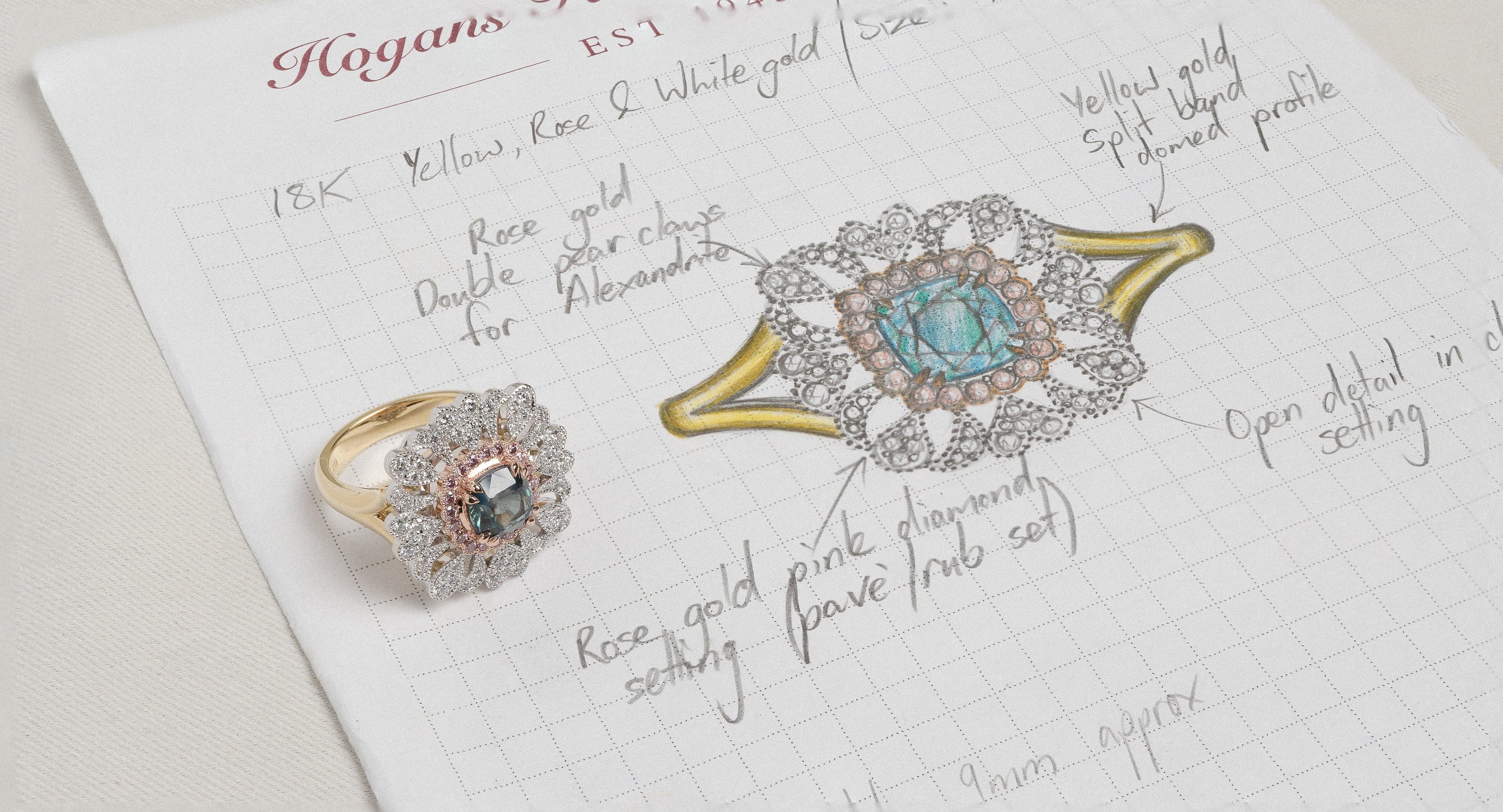 Alexandrite is more than just a gemstone; it is a marvel of nature. Its unique colour-changing property sets it apart from all other gemstones, offering a magical and captivating experience. Here at Hogans, we are so incredibly honoured to have been gifted with the responsibility to design and craft such a stunning bespoke piece that showcases this incredibly rare gemstone.