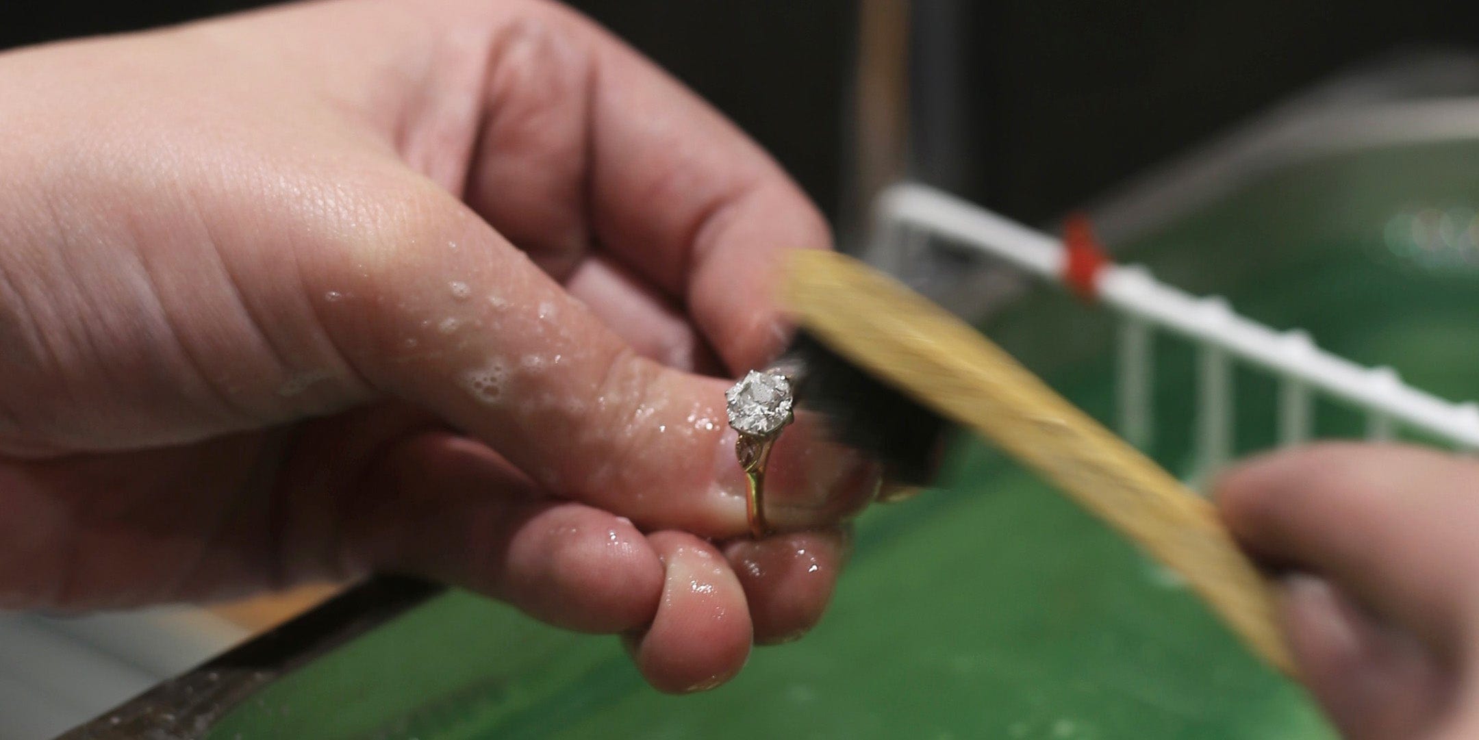 Step 5: Blow on the jewellery piece to remove any excess liquid, before patting the jewellery piece dry with a soft, lint-free cloth. Avoid using paper towels as they can leave scratches.