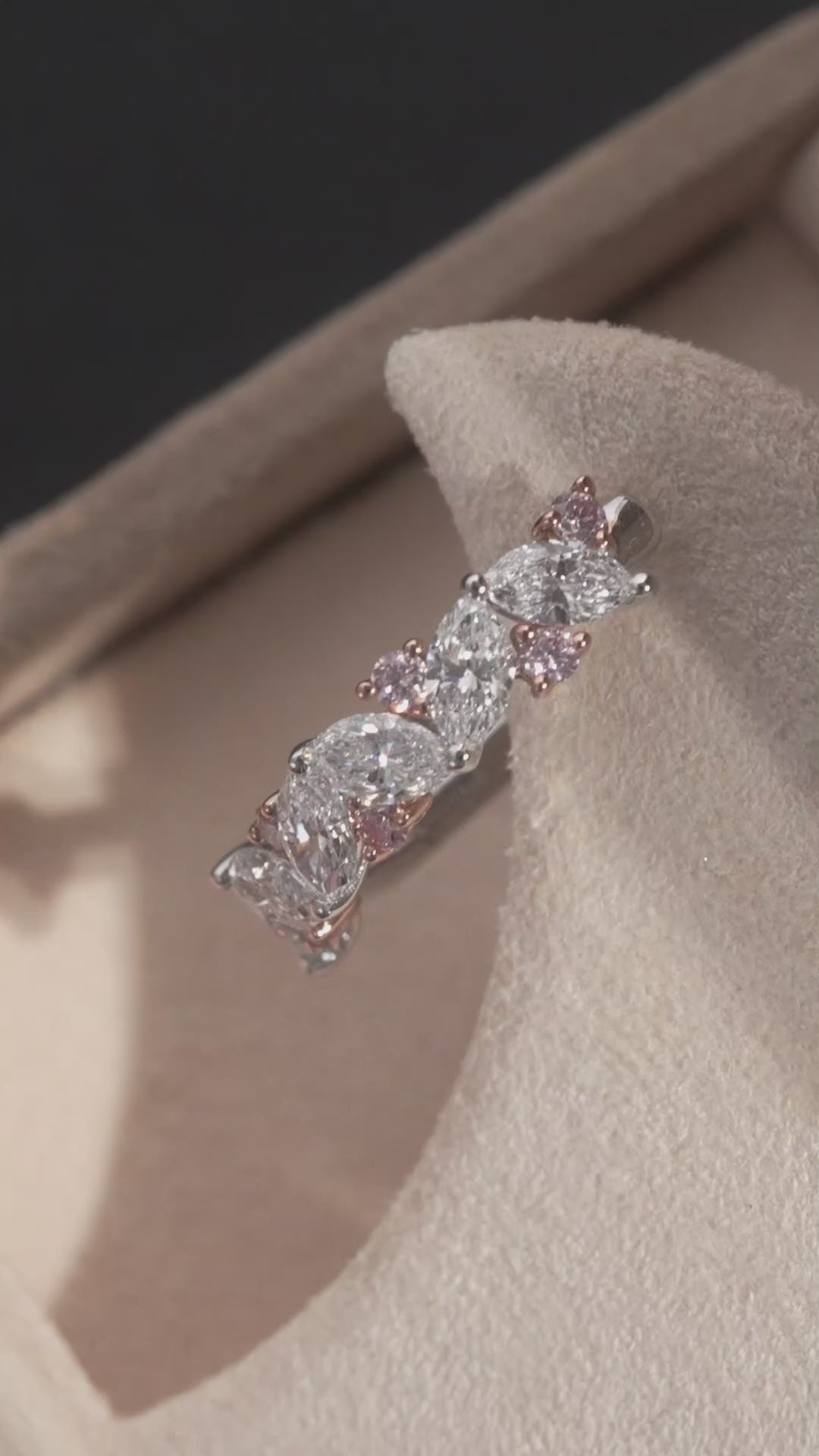 A marquise diamond boasts 56 facets in a longer shape that ends with a point on each side.